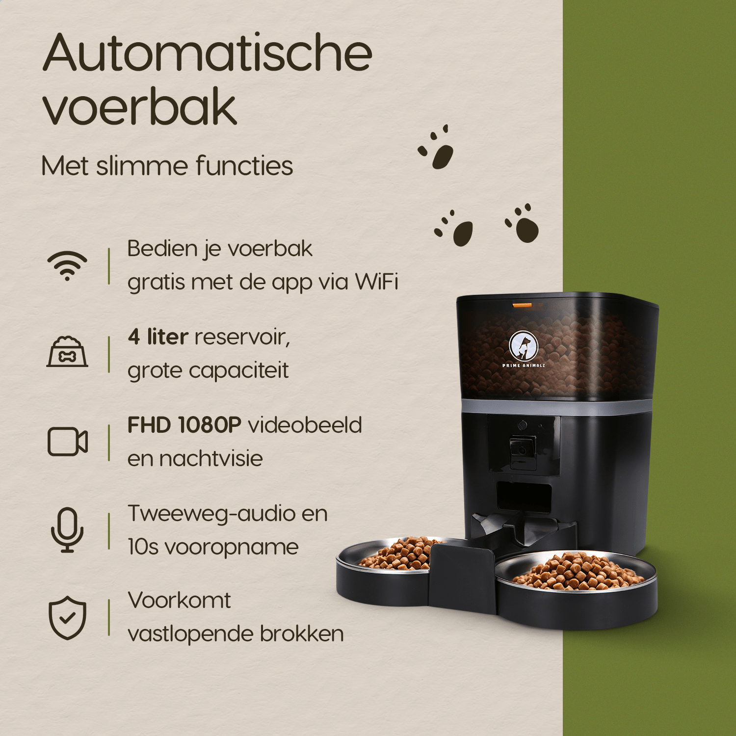 • App-integratie: Bediening via de app, zelfs vanuit het buitenland. Altijd volledige controle over het voedingsschema van je huisdier.