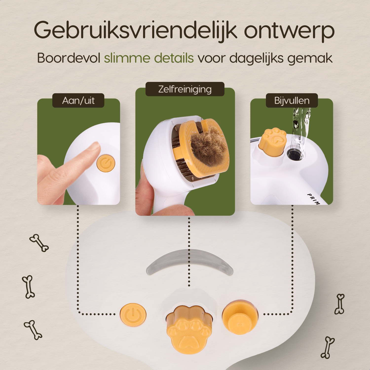 Of je nu een kattenborstel zoekt voor een korte vacht of een hondenborstel voor een dikke ondervacht, de Prime AnimalZ stoomborstel S900A premium is geschikt voor dagelijks gebruik. Regelmatig borstelen helpt losse haren in huis te verminderen en draagt bij aan een gezonde en glanzende vacht.