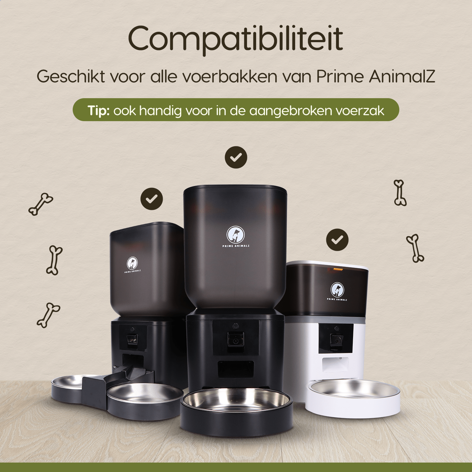 - Universeel formaat: Deze zakjes passen perfect in zowel de enkele als dubbele versie van de Prime AnimalZ automatische voerbak (4, 6 en 7 liter).